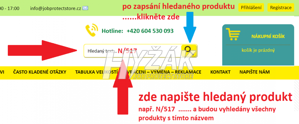 - Do vyhledávacího pole „hledaný text" klikněte a napište název hledaného produktu / zboží / a klikněte na „lupu" nebo na klávesu „enter"