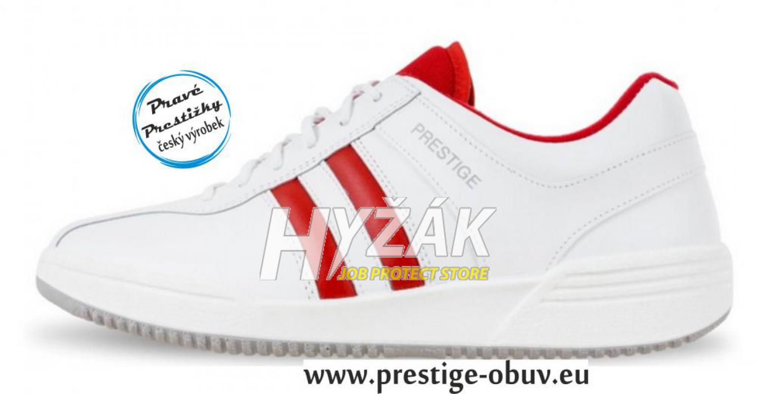 Sportovně laděný model nabízí všechny přednosti oblíbené obuvi PRESTIGE a navíc zaujme krásným, nadčasovým designem. Šíře H, vhodná i pro širší nohu. Obuv s širokým použitím pro volný čas, turistiku, rekreační sport a pro práci. Tato obuv je předurčena k neustálému pohybu a věřte, že si ji oblíbíte natolik, že v ní pokoříte kdejaký vycházkový rekord. Obuv může být použita jako pracovní obuv a splňuje požadavky: na bezpečnost a ochranu zdraví dle ČSN EN ISO 20347:2012. Tahle směsice písmen a čísel v překladu znamená, že Prestige Sport na sebe oficiálně bere zodpovědnost za bezpečí a zdraví tvých chodidel. Za deště drží na zemi jako přibitá a všemožné technologické vychytávky z ní dělají pohodlnou botu, kterou nebudete chtít zout téměř za žádných okolností. Prestige SPORT upoutá elegantním designem, ale zároveň má pěkně tuhý kořínek a bude zdobit nožku opravdu dlouho. Nějaká špína ji absolutně nemůže rozhodit, vždyť je odolná i proti palivovým olejům a díky všem výše zmíněným vlastnostem jde o certifikovanou pracovní obuv. Jestli s ní budete dřít do úmoru v továrně nebo se vydáte s přáteli za zábavou, vždy si můžete být jisti –péče a pohodlí na každém kroku. Svršek-přírodní usňový materiál opatřený polyuretanovou fólií pro snadnou údržbu a dlouhou životnost. Podšívka-textil. Podešev a mezipodešev -dvoukomponentní polyuretanový nástřik tlumící nášlapné síly a šetřící pohybový aparát1