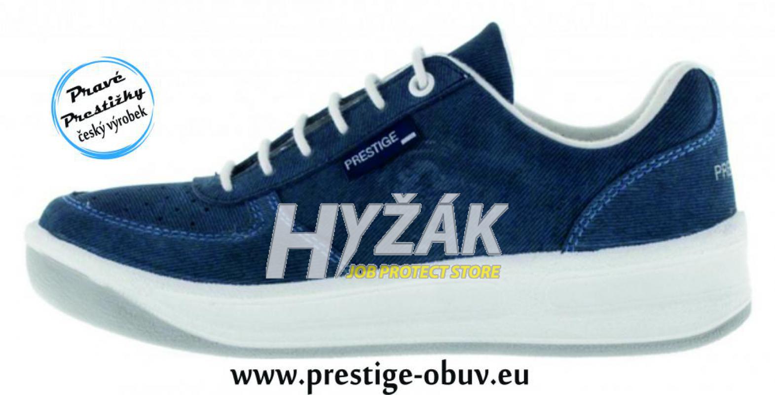 Obuv s širokým použitím pro volný čas, turistiku, rekreační sport a pro práci. Je pohodlná, zaručuje vysoký komfort při nošení díky anatomicky tvarované pěnové nášlapné části boty i díky použité přírodní usni na svršku.Nové denim provedení – oblíbený vzhled „džínoviny“ – přírodní vlasová kůže, doplněná o plastickou ražbu na boku obuvi, v patě nechybí reflexní nápis. Obuv je certifikována v ITC, a. s., Zlín jako pracovní obuv dámská a pánská. Obuv usňová vstřikovaná pracovní zn. PRESTIGE, šíře G a šíře H, splňuje požadavky: • na bezpečnost a ochranu zdraví dle ČSN EN ISO 20347:2012• absorpce energie v oblasti paty (tlumí nárazy)• na odolnost podešve proti palivovým olejům• na bezpečnost a ochranu zdraví dle ČSN EN ISO 20347:2012• absorpce energie v oblasti paty (tlumí nárazy)• na odolnost podešve proti palivovým olejůmSvršek• přírodní usňový materiál opatřený polyuretanovou fólií pro snadnou údržbu a dlouhou životnost vyráběný přímo pro naši firmu koželužnou v Itálii• DENIM - přírodní vlasová useň upravená do vzhledu oblíbené riflovinyPodšívka• textilPodešev a mezipodešev• dvoukomponentní polyuretanový nástřik, tlumící nášlapné síly a šetřící pohybový aparát