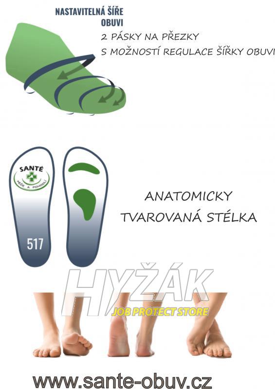 Anatomická tvarovaná stélka – srdíčko + podprstová řasa pro podporu klenby * podepírá příčnou i podélnou klenbu, čímž zabraňuje vzniku ploché nohy * absorbuje škodlivé nárazy při každém kroku a svými tlumícími účinky šetří klouby i páteř.