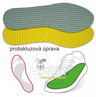 Horní vrstva stélek je vyrobena z parfémovaného absorpčního materiálu, který zajišťuje příjemný a svěží pocit. Druhá vrstva z latexové pěny s vysokou hustotou umožňuje nohám dýchat a absorbuje nárazy. Spodní vrstva s protiskluznou úpravou.